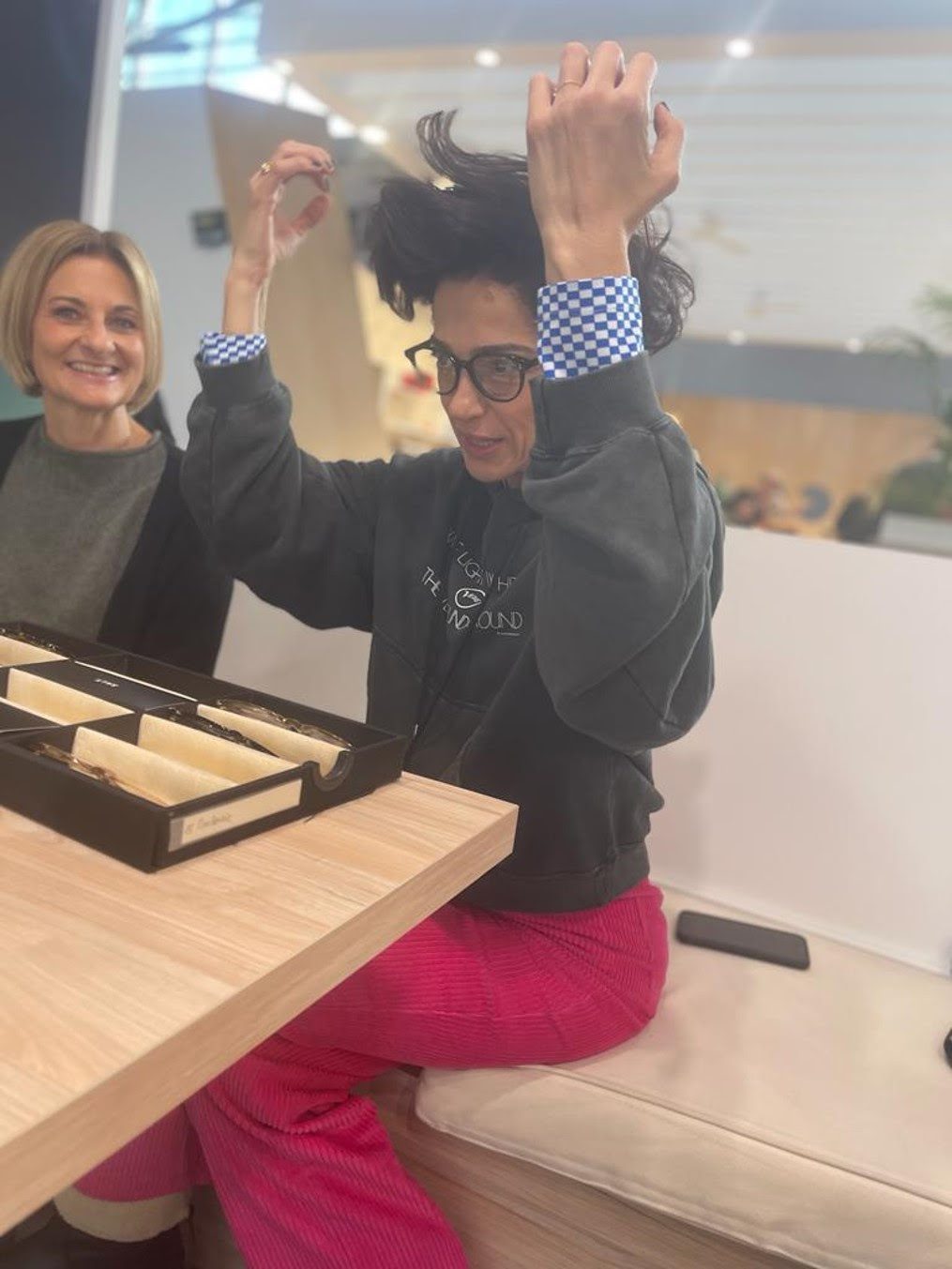 מינכן השנה היתה בסימן משפחה. קודם כל, זכיתי בשני עוזרים אופטיים חרוצים (תמרי ואודי) שליוו, צילמו, האכילו והצחיקו אותי במהלך המירוץ לבחירת קולקציות 2023-2024 (העוזרים האופטיים-אופטימיים הפסיקו לספור במסגרת ה-500 שמדדתי…). מי אמר שצריך להפריד בין משפחה לעסקים 🙂.
